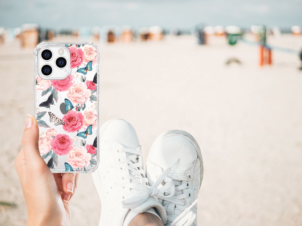 Ben je op zoek naar een uniek telefoonhoesje voor je Apple iPhone 14 Pro Max? Dan ben je bij B2C Telecom aan het juiste adres! Speciaal voor jou hebben we dit prachtige Butterfly Roses design in onze collectie hoesjes opgenomen. Het design wordt bedrukt op een Case en is gemaakt van flexibel rubber. Het hoesje is perfect voor de actieve smartphonegebruiker door de opstaande randen/hoeken. Denk aan mensen die veel sporten, reizen of wandelen en net iets meer zekerheid willen als het op hun geliefde telefoon aankomt. Het design wordt alleen aan de bovenkant van het hoesje bedrukt en de randen blijven transparant. Aan de zijkanten zijn uitsparingen gemaakt waardoor je met gemak alle knoppen en poorten kunt bedienen. Wij adviseren om dit hoesje in combinatie met een screenprotector te gebruiken voor een langere levensduur van je telefoon. Wil je dit hoesje nog iets extra's geven? Voeg dan gratis je naam of een quote toe! Is dit design hoesje toch niet helemaal wat je zocht? Ontwerp dan zelf een hoesje in ons ontwerpprogramma.