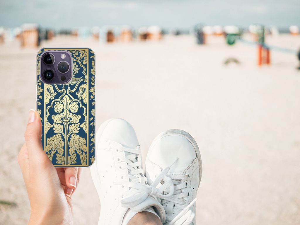 Dit koninklijke hoesje met Beige Flowers ziet er oogverblindend uit. De beige kleur geeft dit design hoesje een super fraai en chique uiterlijk. Je voelt jezelf de koning te rijk als je jouw telefoon beschermt met deze elegante case. De donkerblauwe achtergrond geeft dit design hoesje extra uitstraling en combineert goed met beige. Het hoesje ziet er zeer kostbaar uit, maar is erg goedkoop. Voor een zeer bescheiden bedrag ben je in het bezit van dit design hoesje. De case geeft jou en je Apple iPhone 14 Pro extra status. Voor goedkope design hoesjes zit je goed bij B2C Telecom. Het design staat op een TPU Case. Dit hoesje wordt alleen aan de bovenkant bedrukt en is zeer flexibel. De randen van het hoesje blijven transparant en worden niet bedrukt. Met dit hoesje past jouw telefoon altijd in je broekzak.