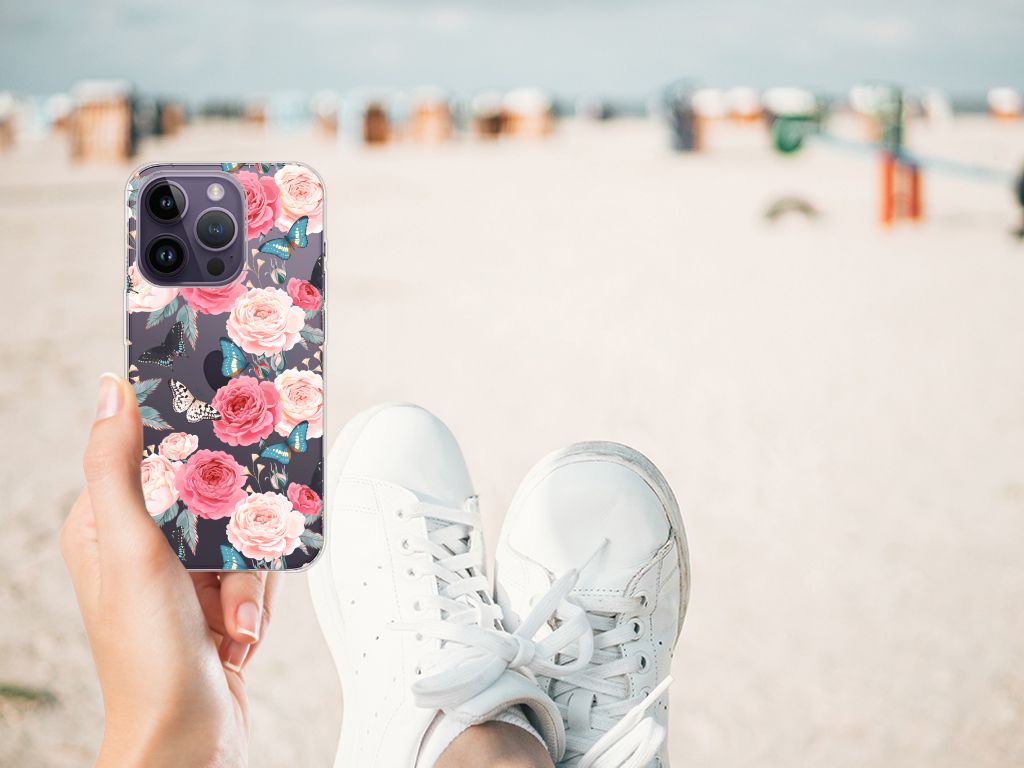 Ben je op zoek naar een uniek telefoonhoesje voor je Apple iPhone 14 Pro? Dan ben je bij B2C Telecom aan het juiste adres! Speciaal voor jou hebben we dit prachtige Butterfly Roses design in onze collectie hoesjes opgenomen. Het design wordt bedrukt op een TPU Case en is gemaakt van flexibel rubber. Het design wordt alleen aan de bovenkant van het hoesje bedrukt en de randen blijven transparant. Aan de zijkanten zijn uitsparingen gemaakt waardoor je met gemak alle knoppen en poorten kunt bedienen. Wij adviseren om dit hoesje in combinatie met een screenprotector te gebruiken voor een langere levensduur van je telefoon. Wil je dit design hoesje nog iets extra's geven? Voeg dan gratis je naam of een quote toe! Is dit design hoesje toch niet helemaal wat je zocht? Ontwerp dan zelf een hoesje in ons ontwerpprogramma.