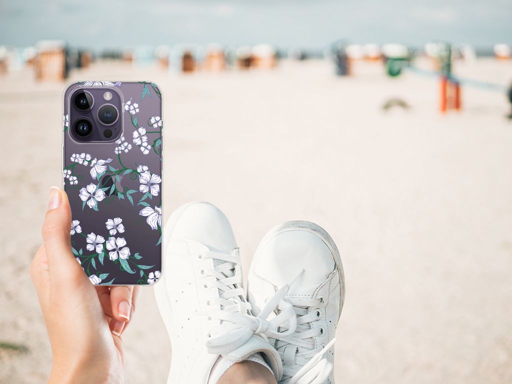 Witte bloemen staan voor puurheid, frisheid, helderheid en eenvoud. Geen wonder dus dat ze al heel lang populair zijn en ook prachtig staan op een telefoonhoesje. Niet iedereen houdt immers van kleurrijke designs. Toch graag bloemetjes op je TPU Case maar zonder bonte kleuren? Dan is dit hoesje voor de Apple iPhone 14 Pro perfect voor jou. TPU is flexibel en heel erg sterk. Zo is je telefoon aan de achterkant en de randen heel goed beschermd. De case is aan de bovenkant bedrukt, de randen blijven transparant. Het TPU-hoesje is perfect te combineren met een screenprotector, zo zijn je telefoon en je beeldscherm altijd goed beschermd.