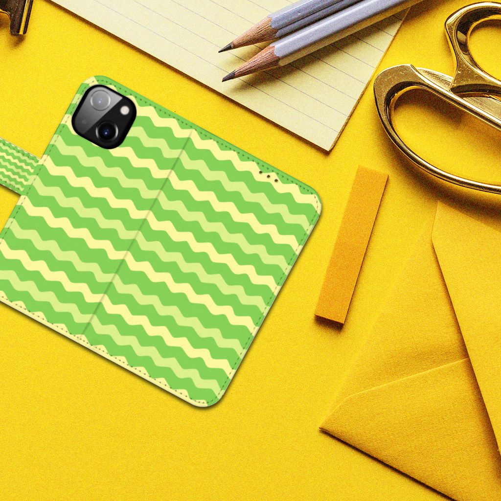 Dit groene design hoesje met groene golven is speciaal ontworpen voor jouw telefoon. We hebben een vleugje geel toegevoegd, zodat er sprake is van variatie. Dit Waves Green hoesje ziet er flitsend uit. Dat kan ook niet anders, als je weet dat we veel energie steken in het bedenken van originele designs. Een heel strak Apple iPhone 14 Telefoon Hoesje, met zeer veel opties. Past dit groene design hoesje met golven goed bij jou? Bestel het dan vandaag nog, tegen zeer lage kosten. Het design staat op een boekhoesje. Dit smartphonehoesje beschermt jouw telefoon aan alle zijden en beschikt over verschillende opbergvakjes voor pasjes en briefgeld. De case sluit perfect af met het lipje aan de buitenkant. De houder aan de binnenzijde is van TPU. Alle zijden van het groene hoesje met golven worden bedrukt, inclusief het lipje.