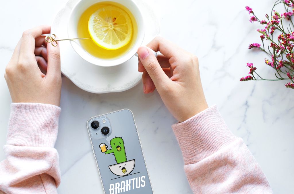 Voor de stappers onder ons hebben we dit hele grappige hoesje ontworpen. Deze Braktus case geeft perfect het gevoel weer als jij in de ochtend wakker wordt na een weekendje carnaval vieren: duf en waardeloos. Hopelijk was dit het wel waard en heb je een gezellige tijd gehad. Als aandenken zou je deze Telefoonhoesje met Naam met cactus print kunnen bestellen. Deze design case beschermt jouw Apple iPhone 14 vooral aan de achterkant en zijkanten, het scherm blijft deels onbeschermd. Verder heeft het telefoonhoesje opstaande randen, zodat het toestel bij een val de grond niet direct raakt. Een handig en flexibel hoesje, dat altijd in je broekzak past. Bescherming heb je met carnaval natuurlijk wel nodig, want tijdens het hossen kan de telefoon zomaar uit je outfit vallen. Bestel daarom deze TPU case, gemaakt van schokabsorberend materiaal. Alleen de bovenkant van de case wordt bedrukt en de randen blijven transparant.
