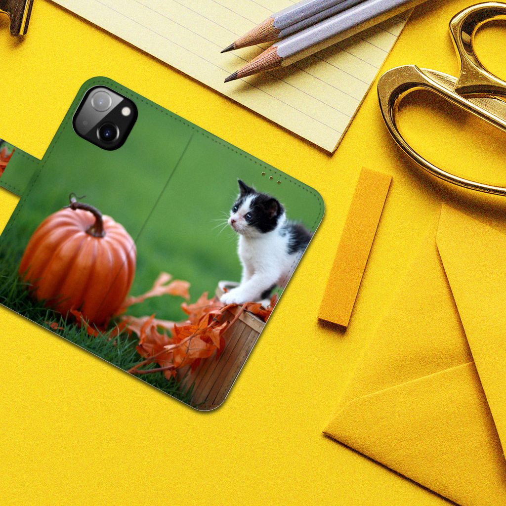 Misschien weet je wel dat huisdieren ontzettend goed voor ons zijn en voor het verlagen van onze stressniveaus. Het aaien van een kitten kan je direct kalmeren. Helaas kun je niet altijd een kitten bij je hebben. Wel kan het helpen om naar de kitten op jouw flip case te kijken als jij je gestrest voelt. Dat kan wanneer je dit Apple iPhone 14 Telefoonhoesje met Pasjes aanschaft waar een ontzettend schattige kitten op te vinden is. Heb je zelf katten en wil je liever naar hen kijken wanneer je onderweg bent? Ook dat kan! Met onze phone case designer tool kan je voor dezelfde prijs elke foto die je wilt op de voorkant van het hoesje laten zetten. Je kunt er zelfs nog een kalmerende quote of de naam van jouw kat bijvoegen.