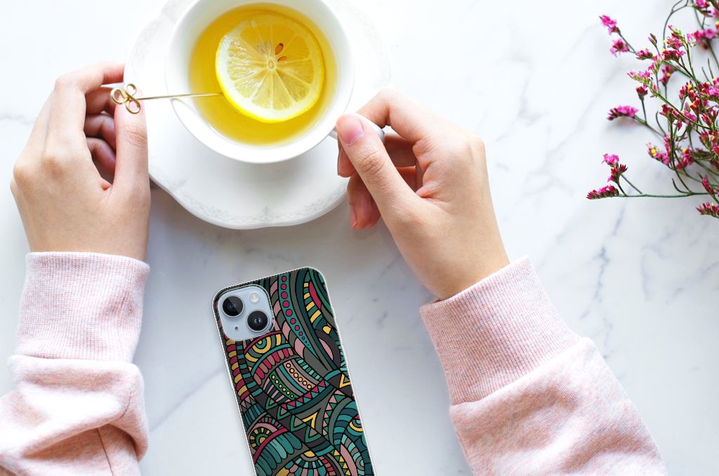 Voor de mensen die een beetje artistiek zijn, kunnen we een onderscheidende Apple iPhone 14 TPU bumper bedrukken met kleuren in een soort retro stijl. Je krijgt bijna een beetje een nostalgisch gevoel bij dit kunstzinnige design hoesje. De opdruk Aztec komt op de bovenzijde van de TPU case te staan, die zeer flexibel en praktisch is. Dit leuke hoesje in verschillende kleuren gaat nooit verloren en is net zo duurzaam als het gave patroon. De print wordt in ons eigen magazijn bedrukt. De case heeft alle nodige uitsparingen, zodat je alle knoppen en poorten simpel kunt bedienen. Het smartphonehoesje beschermt jouw telefoon vooral aan de achterzijde en zijkanten. Deze zijkanten worden overigens niet bedrukt. Met dit leuke hoesje in opvallende kleuren oogt jouw smartphone zeer modern maar grijp je toch een beetje terug naar het verleden.