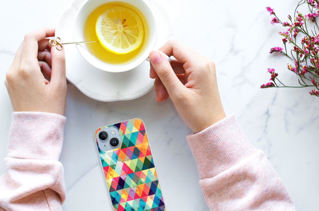 Van dit geruite design hoesje moet je een beetje houden. Maar als je het eenmaal in bezit hebt, ben je waarschijnlijk binnen no time verkocht. Het design heeft ruitjes in alle kleuren van de regenboog en door de grijze achtergrond kan het hoesje enigszins druk overkomen. Maar tegelijkertijd is dit de kracht van het hoesje. Met dit design hoesje Geruit zal je namelijk heel erg opvallen. Dit is voor veel vooral jonge smartphone gebruikers een belangrijk voordeel. Deze geruite print staat op een Apple iPhone 14 TPU bumper. Dit zeer flexibele smartphone hoesje heeft alle nodige uitsparingen en past altijd in je broekzak. De case is aan de bovenkant bedrukt, de randen blijven transparant.