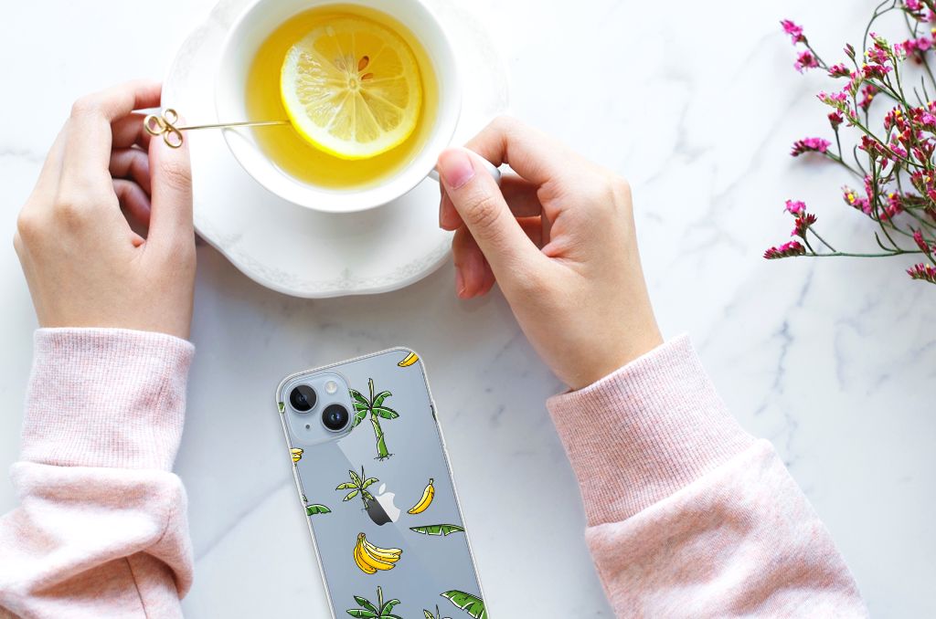 Heb jij al zin om op vakantie te gaan? Dat krijg je hoe dan ook als je één blik werpt op dit vrolijke hoesje voor je Apple iPhone 14 met Banana Tree design. Het fleurige tafereel van bananenbomen, bananenbladeren en bananen doet je gedachten afdwalen naar paradijselijke bountystranden met azuurblauwe zee en helderwitte zandpartijen. Kortom: dit hoesje is goed voor je humeur. Naast het luchtige design zijn daar nog meer redenen voor, want dankzij de stevige materialen weet je zeker dat dit TPU Case je telefoon altijd optimaal beschermt Dit hoesje wordt alleen aan de bovenkant bedrukt en is zeer flexibel. De randen van het hoesje blijven transparant. Met dit hoesje breng je jezelf in zomerse sferen en gun je jezelf een krasvrije telefoon.