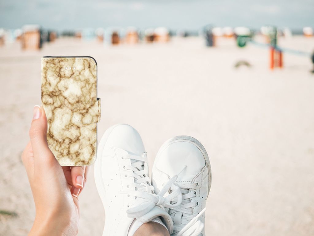 Dit Apple iPhone 5 | 5s | SE Bookcase met Marmer Goud is het waard om een blokje voor om te rijden. Dit is overigens niet nodig. Als je het hoesje met goud marmer nu bestelt heb je het zeer snel in huis. Je kunt er bij wijze van spreken thuis op gaan zitten wachten. Je hebt diverse soorten marmer. We hebben enkele fraaie kleuren op onze hoesjes gezet, zoals in dit geval het gouden marmer. Het marmer wordt bedrukt op alle zijden van het boekhoesje, dat beschikt over vakjes voor pasjes en briefgeld en een magnetisch lipje aan de buitenzijde. Verder heeft de case met marmer met goud een houder van TPU. De rijkheid aan kleuren en varianties in afwerking is een fraaie eigenschap van marmer. Dit boekhoesje met marmer goud heeft ook veel schitterende eigenschappen en is de ideale bescherming voor jouw smartphone.