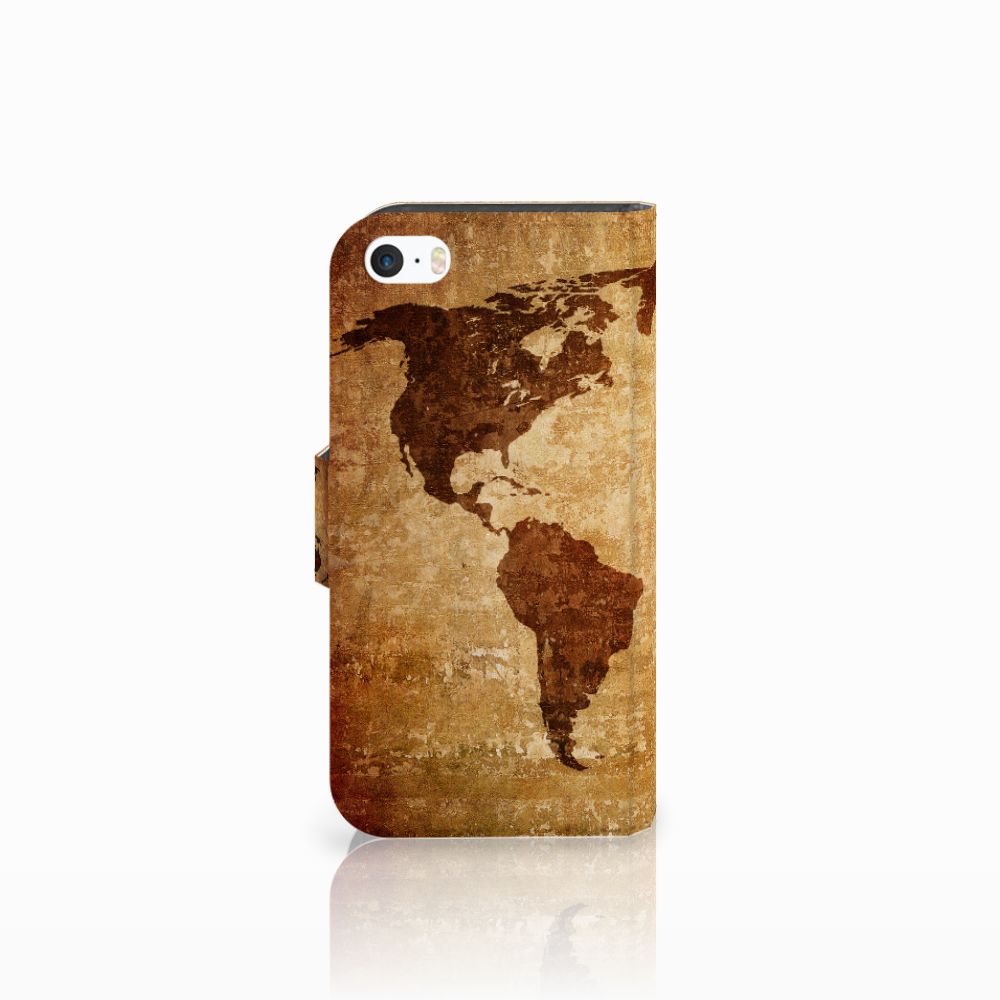 Apple iPhone 5 | 5s | SE Flip Cover met pasjes Wereldkaart