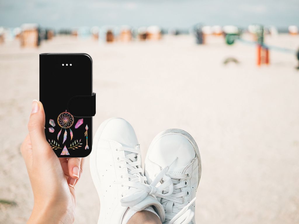 Een dromenvanger werd lang geleden al door een indianenvolk in Noord-Amerika gebruikt om nare dromen te weren. Nu nog hangen mensen over de hele wereld dromenvangers boven hun bed. Maar ook op een telefoonhoesje staat zo’n boho dreamcatcher heel mooi. Dit mooie design dat bestaat uit een tipi, pijlen en dromenvanger heeft veel verschillende prachtige kleuren. Maar omdat het ontwerp minimalistisch en klein is, is het design toch subtiel te noemen. Met dit Leuk Hoesje voor de Apple iPhone 5 | 5s | SE heb je al je belangrijkste bezittingen bij de hand. Binnenin zit namelijk een pasjeshouder voor twee pasjes. Daar bewaar je je belangrijkste (bank)passen in en je briefgeld. En uiteraard is je telefoon ook goed beschermd tegen krassen en beschadigingen.