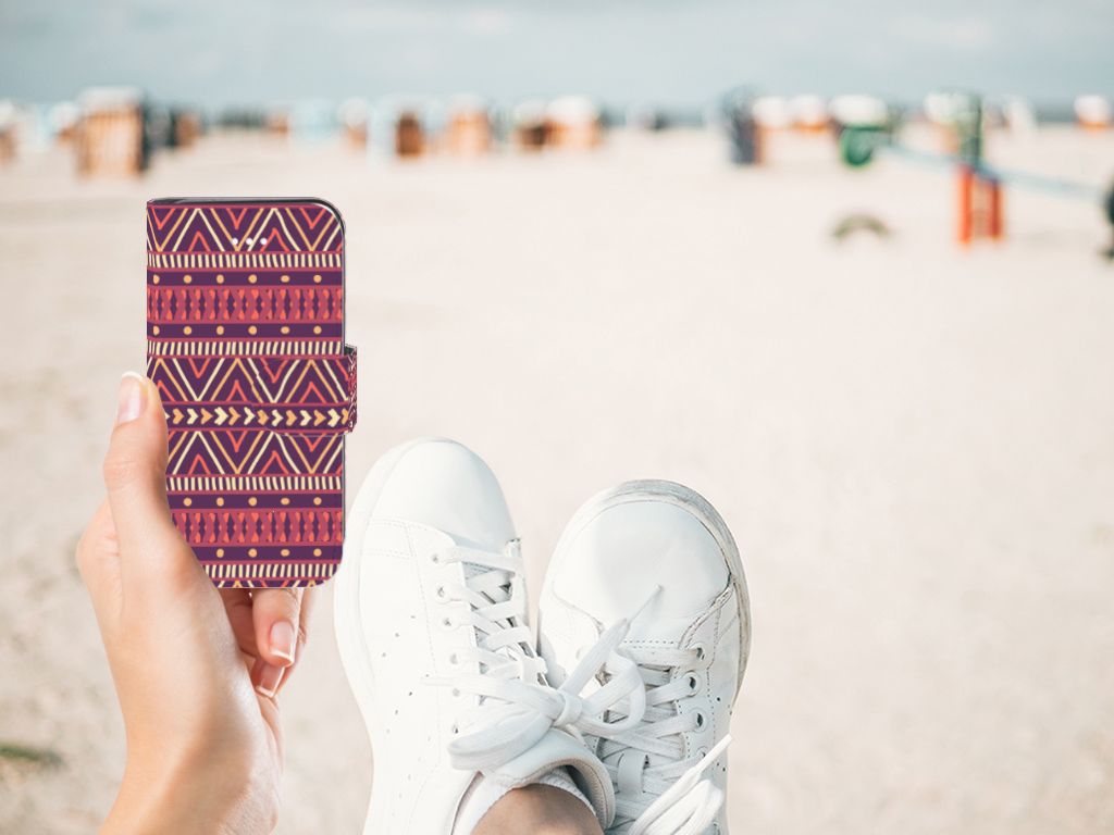 De Azteken leefden tussen 1200 en 1521 in het huidige Mexico. De mooie Aztec-patronen waar zij bekend om stonden, zien we nu nog op kleding, stoffen en tassen. Wie had toen kunnen bedenken dat we diezelfde prints honderden jaren later zelfs op een telefoonhoesje zouden vinden? Dit Aztec Purple-hoesje is perfect voor iedereen die een stukje geschiedenis bij zich wil dragen maar ook gewoon een mooi patroon op zijn hoesje wil. Dit vrolijke, kleurrijke ontwerp staat op een Telefoon Hoesje voor de Apple iPhone 5 | 5s | SE. Zo heb je naast een beschermde telefoon ook plek voor twee (bank)pasjes, geld en heb je meteen je belangrijkste bezittingen bij de hand. De houder is gemaakt van TPU, de buitenzijde van PU-leer.