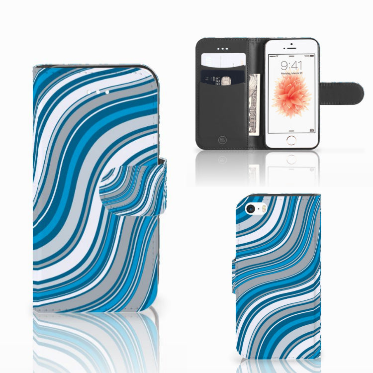 Zeer cool, dit hoesje met vooral blauwe kleuren, die in een golvende beweging jouw telefoon van een mooie uitstraling voorzien. Tijdens een zonnige vakantie aan zee is jouw smartphone perfect beschermd met dit telefoonhoesje. Het design Waves Blue van dit smartphone hoesje doet lichtjes denken aan een lolly, waarmee je een klein kind zeer blij maakt. Jouw Apple iPhone 5 | 5s | SE zal er ook zeer vrolijk uitzien samen met dit design hoesje. De witte en grijze kleuren staan in mooi contrast met het blauw, waardoor de uitstraling van deze accessoire zeer mooi is. Ook voor andere kleuren kun je natuurlijk uitstekend terecht in ons assortiment. Het design staat op een boekhoesje. Dit Telefoon Hoesje beschermt jouw telefoon aan alle zijden en beschikt over verschillende opbergvakjes voor pasjes en briefgeld. De case sluit perfect af met het lipje aan de buitenkant. De houder aan de binnenzijde is van TPU.