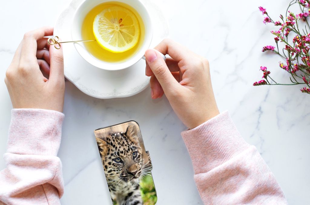 Apple iPhone 5 | 5s | SE Telefoonhoesje met magneetsluiting Baby Luipaard