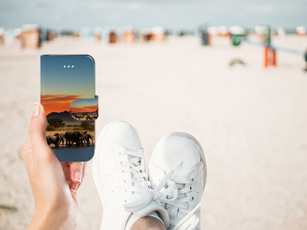 Op dit hoesje zie je een kudde olifanten genieten van het koude water onder een prachtige rode lucht. Dit hoesje straalt pure natuur uit, de olifant is namelijk het grootste landdier. Gegarandeerd zijn olifanten ook erg sterk, evenals onze bookcase. Als je jouw Apple iPhone 5 | 5s | SE hierin bewaart, loop je weinig kans op beschadigingen. Zolang hij in het hoesje zit, is hij volledig beschermd. Ook als je je telefoon per ongeluk laat vallen, biedt dit Telefoonhoesje met Pasjes optimale bescherming. Er kan bijna niks meer fout gaan. Het hoesje is vervaardigd uit duurzaam materiaal, waardoor het lang mee zal gaan.