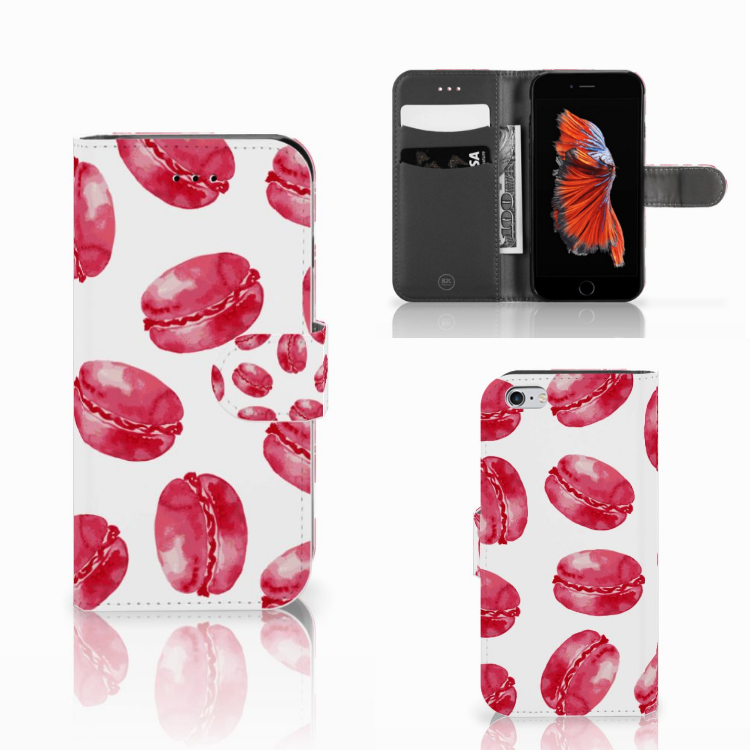 Dit hoesje met Pink Macarons is een zeer opvallende bescherming voor jouw smartphone. Macarons zijn Franse koekjes: kleine, rond en luchtig. Ze worden in veel verschillende smaken gemaakt, herkenbaar aan de verschillende kleuren zoals chocolade (donkerbruin), mokka (middenbruin), kersen (rood), pistache (groen), aardbei (roze), framboos (karmijn). Deze kleuren kun je niet allemaal zien op dit fraaie design hoesje met roze macarons. Heb je altijd al een Apple iPhone 6 | 6s Book Cover willen hebben met roze macarons? Grijp dan nu je kans. Een boekhoesje heeft zeer veel goede eigenschappen, zoals opbergvakjes aan de binnenkant en een magnetische sluiting in de vorm van een lipje aan de buitenzijde. Dit design hoesje met roze macarons wordt aan alle zijden bedrukt, zelfs het lipje krijgt een afbeelding van een roze macaron. De houder aan de binnenkant van het hoesje is van TPU.