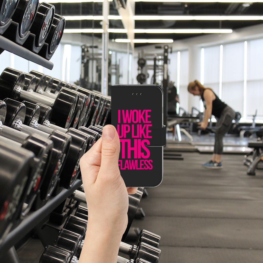 Met dit zwarte Apple iPhone 6 | 6s Hoesje met naam met paarse tekst heb je een geweldige bescherming van je smartphone in handen. Dit zwarte hoesje met Woke Up tekst is een must voor jouw smartphone. Met dit design hoesje tekst val je ook zeker op. Je weet ook zeker dat het hoesje exclusief is. Het design is gemaakt door B2C Telecom. Het hoesje heeft verschillende vakjes en is aan alle zijden bedrukt. Ook het lipje aan de buitenkant kan worden bedrukt. De houder is van TPU, de buitenzijde van PU-leer. We willen je er ook op wijzen dat je zelf een hoesje kunt ontwerpen, met eigen beelden en teksten. Met onze Phone Case Designer kun je zelfs opvallende effecten, patronen en clip arts aan het ontwerp toevoegen.