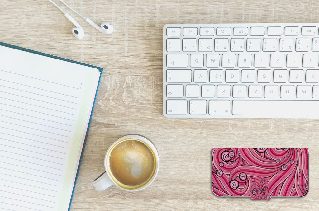 Dit mooie Apple iPhone 6 | 6s Hoesje met Swirl Pink is een geweldige en duurzame bescherming voor jouw smartphone. De kleuren zijn zeer subtiel op het hoesje gezet en worden op alle zijden van de case bedrukt. Dit drukwerk doen we in eigen beheer, zodat het roze en het zwart ook uitstekend tot zijn recht komen op het boekhoesje. Een boekhoesje is perfect op maat gemaakt en heeft verschillende vakjes voor pasjes en briefgeld. Daarnaast is het lipje aan de buitenkant zeer veilig. De case sluit perfect af. De houder aan de binnenzijde is van tpu en is doorzichtig. Ook het lipje aan de buitenzijde wordt in roze met zwart bedrukt. Nergens tref je een hoesje met deze kleuren aan dat zo goed past bij jouw smartphone.