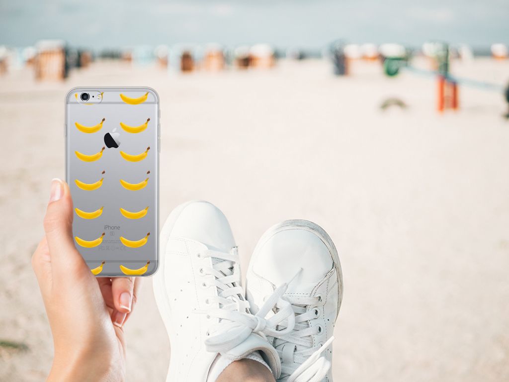 Bananen zitten tjokvol natuurlijke energie-oppeppers. Fructose, glucose, vezels… om er maar eens een paar te noemen. Een banaan is zo’n energiebom, dat wanneer je er twee eet je genoeg energie verzameld hebt om anderhalf uur vol te sporten. Deze vrucht geeft power, daarom misstaan ze ook niet op deze leuke Apple iPhone 6 | 6s Siliconen Case. Met het aantal bananen dat op dit hoesje staat heb je energie voor een hele maanden of misschien wel een paar maanden. Jouw smartphone blijft zijn kracht behouden als je kiest voor dit design hoesje met bananen. Het grijswit geblokte patroon op de achtergrond geeft nog wat extra’s aan de banaan. Altijd als een print van een banaan op je hoesje willen hebben? Dit is je kans. De bananen staan op een TPU case. Dit hoesje wordt alleen aan de bovenkant bedrukt en is zeer flexibel. Met het aantal bananen dat op dit hoesje staat heb je energie voor een hele maanden of misschien wel een paar maanden. De randen van het hoesje blijven transparant en worden niet bedrukt. Met dit hoesje past jouw telefoon altijd in je broekzak.