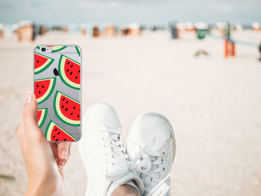 Watermeloenen zijn uitstekende dorstlessers, misschien dat je daarom juist in de zomermaanden extra enthousiast raakt van dit design hoesje Watermelons. Jij blijft gezond als je zo nu en dan een watermeloen neemt, jouw smartphone blijft in tact als je er deze Apple iPhone 6 | 6s Siliconen Case omheen doet. Deze tpu case wordt alleen aan de bovenkant bedrukt met watermeloenen is zeer flexibel. De randen van het hoesje blijven transparant. Je kunt ook kiezen voor andere soorten fruit op je hoesje. Kijk maar eens naar onze andere design hoesjes op onze website.