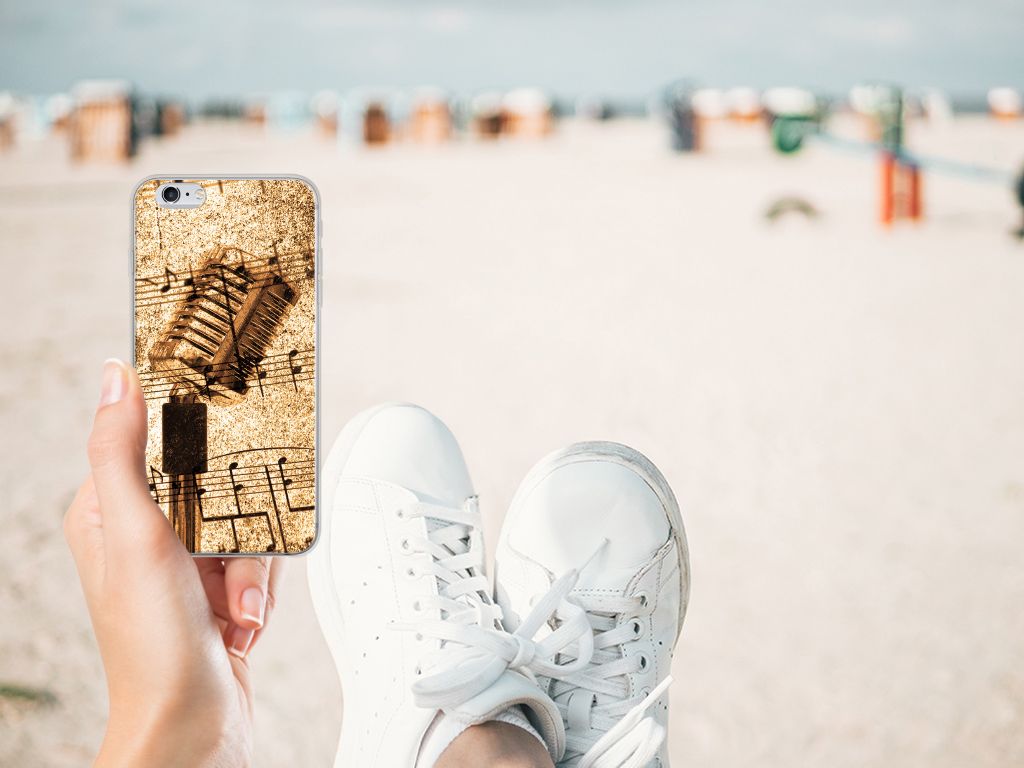 Ben je muzikant, dan is dit design hoesje met Bladmuziek wellicht echt iets voor jou. Met de intrede van nieuwe media wordt de rol van papieren bladmuziek teruggedrongen. Steeds vaker treft men 'bladmuziek' op een beeldschermapparaat, zoals een tablet-pc, e-reader of iPad aan. Gelukkig maar, want als er geen nieuwe media zouden zijn, hadden wij ook nooit onze Phone Case Designer kunnen ontwerpen. Met deze unieke ontwerpmodule kun je jouw favoriete band of artiest op je smartphone hoesje zetten, maar je kunt ook gaan voor dit prachtige design hoesje met print van bladmuziek. Het design staat op een Apple iPhone 6 | 6s Siliconen Hoesje met foto. Deze case beschermt jouw telefoon vooral aan de achterzijde en zijkanten en is zeer flexibel. Het hoesje blijft aan de zijkanten transparant, de bovenkant is geheel bedrukt. TPU is onbreekbaar materiaal, dat zeer schokabsorberend is. Het hoesje past altijd in je broekzak en combineert uitstekend met een screenprotector.