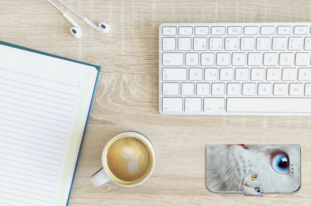 Witte katten zijn erg bijzonder en dat is precies de reden dat wij deze op prominente wijze op dit design hoesje hebben geplaatst. Maar deze witte kat is extra speciaal, doordat de ogen twee verschillende kleuren hebben: blauw en vurig rood. Hiermee heb jij als uniek mens ook een unieke bookcase. Ook de manier waarop dit telefoonhoesje voor de Apple iPhone 6 | 6s is bedrukt, is bijzonder. Je ziet namelijk een kleinere versie van dezelfde kat terug op het lipje. Hierdoor zie je de speciale witte kat twee keer terugkomen op jouw hoesje. Omdat je waarschijnlijk een dierenliefhebber bent als je dit Telefoonhoesje met Pasjes uitkiest, is dit ook een erg duurzaam hoesje. Het hoesje wordt aan alle kanten met duurzame inkt bedrukt.