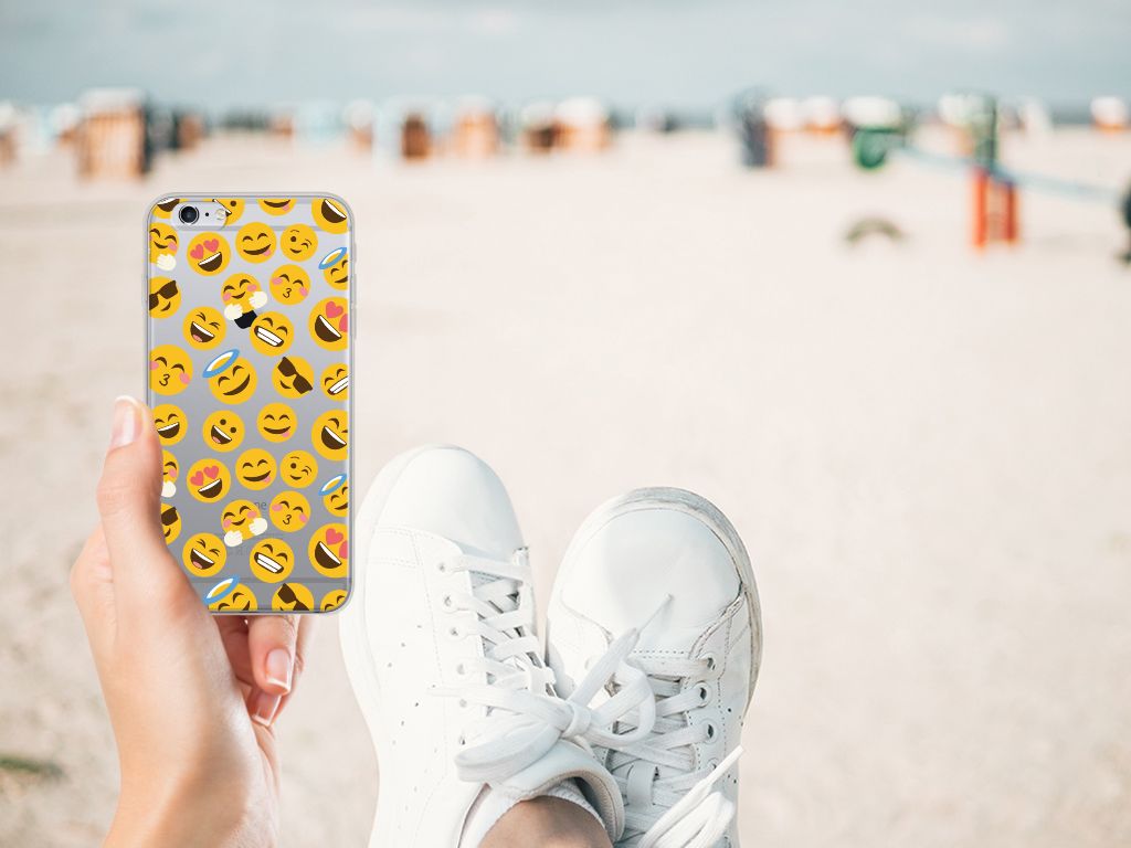 Je gebruikt ze waarschijnlijk dagelijks: emoji’s. Daarom hebben we besloten ze op een design hoesje te zetten. De kleurrijke, vaak gele emoticons maken chatberichten net wat spontaner. Dat hebben we allemaal te danken aan Japan, waar de emoji’s die we zo goed kennen vandaan komen. Ondertussen zijn er meer dan 1800! Deze passen natuurlijk niet allemaal op een Apple iPhone 6 | 6s TPU bumper, maar we hebben de meeste gebruikte exemplaren erop gezet. Deze tpu case is voorzien van opstaande randen zodat het touchscreen van je telefoon beter is beschermd. Super handig. Het TPU zelf is zeer flexibel en is op maat gemaakt. We gebruiken emoji’s vaak om complete woorden te vervangen. Dit smartphone hoesje zegt dan ook meer dan duizend woorden kunnen. De tpu case wordt alleen aan de bovenzijde bedrukt met emoji’s. De zijkanten van de case worden niet bedrukt en blijven transparant.