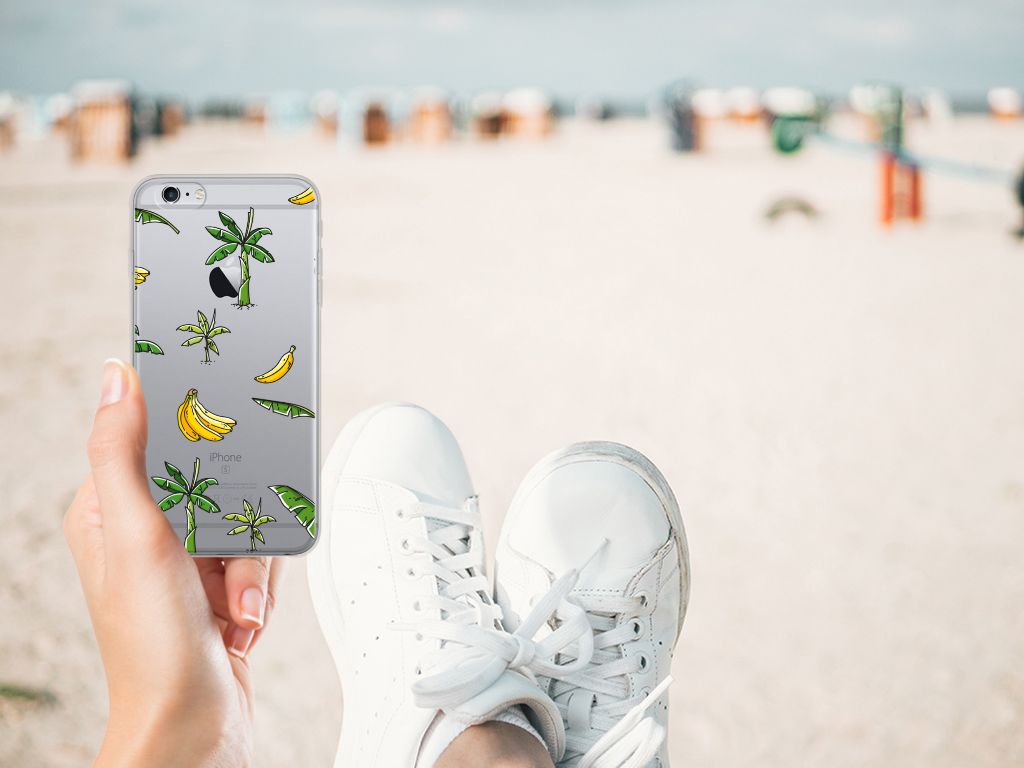 Heb jij al zin om op vakantie te gaan? Dat krijg je hoe dan ook als je één blik werpt op dit vrolijke hoesje voor je Apple iPhone 6 | 6s met Banana Tree design. Het fleurige tafereel van bananenbomen, bananenbladeren en bananen doet je gedachten afdwalen naar paradijselijke bountystranden met azuurblauwe zee en helderwitte zandpartijen. Kortom: dit hoesje is goed voor je humeur. Naast het luchtige design zijn daar nog meer redenen voor, want dankzij de stevige materialen weet je zeker dat dit TPU Case je telefoon altijd optimaal beschermt Dit hoesje wordt alleen aan de bovenkant bedrukt en is zeer flexibel. De randen van het hoesje blijven transparant. Met dit hoesje breng je jezelf in zomerse sferen en gun je jezelf een krasvrije telefoon.