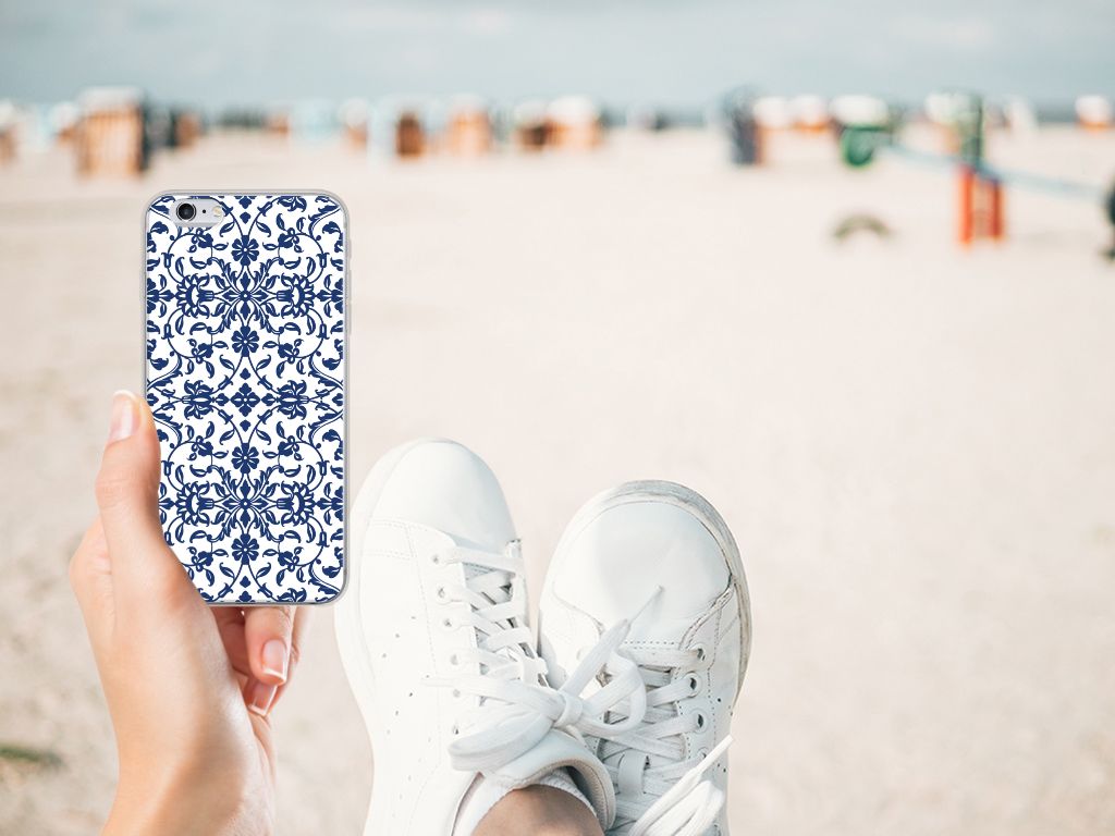 Een plaatje, deze Apple iPhone 6 | 6s TPU Case met Flower Blue patroon, die jouw telefoon van een hele mooie uitstraling voorziet. We hebben verschillende soorten patronen in de aanbieding waarmee we jouw hoesje kunnen verrijken, maar dit is wel een van de fraaiste. Maar natuurlijk heeft iedereen zo zijn eigen smaak. Vandaar dat we nog allerlei andere patronen kunnen aanbieden in de leukste kleurencombinaties. Het tpu hoesje met blauwwit patroon beschermt jouw telefoon vooral aan de achterkant en zijkanten en heeft opstaande randen aan de voorkant. De tpu case is zeer flexibel dankzij het elastische materiaal. Wij bedrukken de case in eigen beheer. De zijkanten van de tpu case blijven transparant en krijgen dus geen blauwwit patroon. Alleen de achterzijde van de hoes wordt bedrukt. Heb je een rijke fantasie? Ontwerp dan je eigen design hoesje met favoriet patroon.