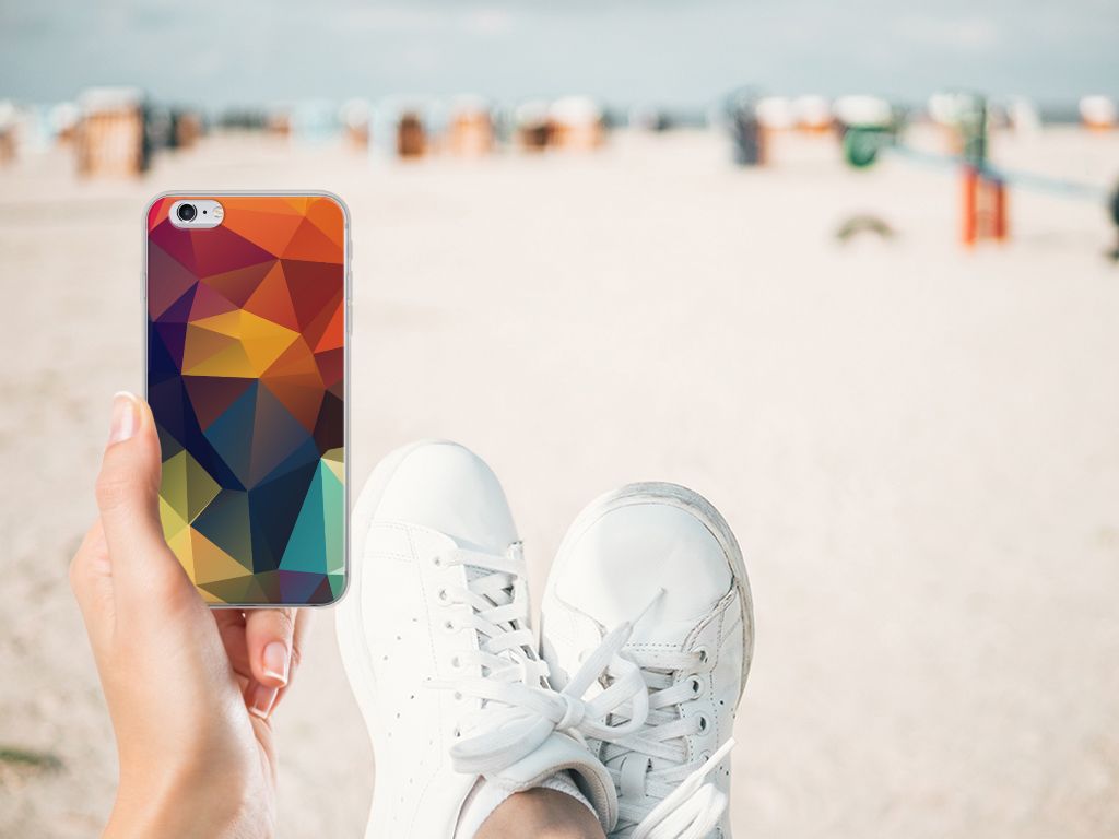 Veelkleurige driehoeken die samen eindeloze asymmetrische patronen lijken te vormen. Het is het abstracte schouwspel dat op dit fraaie hoesje voor je Apple iPhone 6 | 6s direct de aandacht trekt noemen we voor het gemak trekt noemen we voor het gemak Polygon Color. De een ziet er een berglandschap in, de ander piramides. Wat zie jij erin? Zeker is in elk geval dat de aanblik van dit fascinerende ontwerp je niet snel gaat vervelen. Het kleurige spel van lijnen en vlakken blijft eindeloos boeien en geeft jouw TPU Hoesje een hippe en kunstzinnige uitstraling. De kracht die het lijnenspel uitstraalt, komt ook terug in het hoesje zelf. Dit hoesje wordt alleen aan de bovenkant bedrukt en is zeer flexibel. De randen van het hoesje blijven transparant. Wat wil je nog meer?