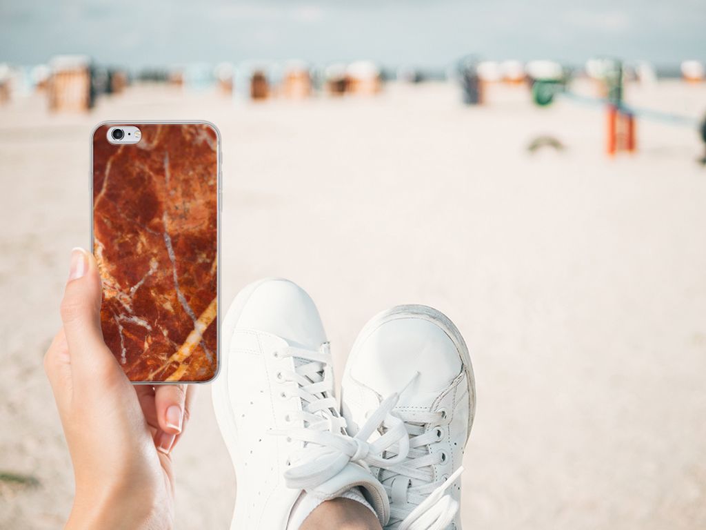 Dit design hoesje met Marmer Bruin is voor de artistieke personen onder ons. De Grieken en Romeinen wisten het al te waarderen door het als bouw- en bekledingsmateriaal toe te passen. Naast het witte Carrara marmer met haar zacht grijze geaderde belijning zijn de diverse soorten in een ruim kleurenpallet te krijgen. We hebben verschillende kleuren op design hoesjes gezet, zoals in dit geval bruin marmer. Dit is een Apple iPhone 6 | 6s TPU Siliconen Hoesje met marmer in bruine kleur. Het marmer wordt bedrukt op de voorkant van een tpu case, die beschikt over opstaande randen aan de voorkant en heel goed combineert met een screenprotector. De rijkheid aan kleuren en varianties in afwerking geeft ontwerpers de vrijheid om met marmer hele mooie architectonische projecten te realiseren. Wij hebben onze designer ook veel vrijheid gegeven. Het resultaat zie je terug in deze tpu case met bruin marmer, die jouw smartphone goed beschermt. De zijkanten van de case worden niet bedrukt met marmer.