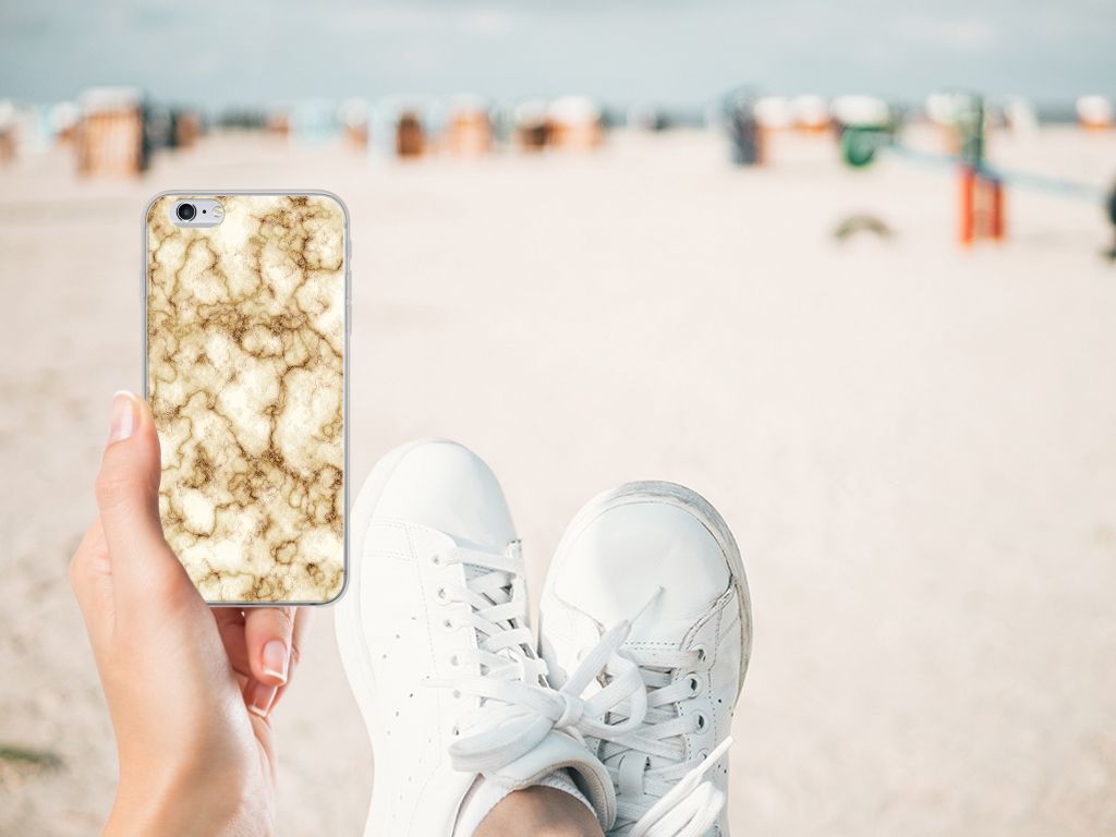 Deze Apple iPhone 6 | 6s TPU Siliconen Hoesje met Marmer Goud is het waard om een blokje voor om te rijden. Dit is overigens niet nodig. Als je het hoesje met goud marmer nu bestelt heb je het zeer snel in huis. Je kunt er bij wijze van spreken thuis op gaan zitten wachten. Je hebt diverse soorten marmer. We hebben enkele fraaie kleuren op onze hoesjes gezet, zoals in dit geval het gouden marmer. Het goud marmer wordt bedrukt op de achterkant van de tpu case, die beschikt over alle nodige uitsparingen waardoor je alle knoppen en poorten van je smartphone kunt bedienen. Verder is de case met goud marmer gemaakt van zeer flexibel materiaal. De rijkheid aan kleuren en varianties in afwerking is een schitterende eigenschap van marmer. Dit tpu hoesje met goud marmer heeft ook veel schitterende eigenschappen en is de ideale bescherming voor jouw smartphone.