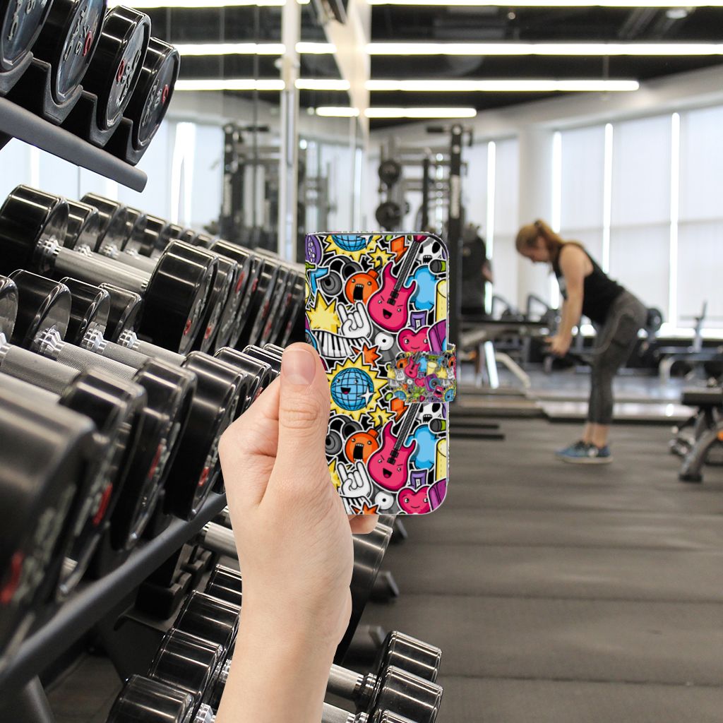 Ben jij opzoek naar een uniek hoesje wat jouw rebelse kant laat zien? Dan ben je hier aan het juiste adres. Deze Apple iPhone 6 | 6s Wallet Case met Pasjes vol met gitaren, discoballen en meer is een waar spektakel om naar te kijken. Bovendien heb je als rocker ook een goed boekhoesje nodig. Tijdens al die concerten en festivals wil jouw telefoon nog weleens uit je zak vallen, wanneer deze dan in dit unieke hoesje zit dan is er niks aan de hand. Jouw telefoon zit veilig in dit boekhoesje. Het is namelijk een boekhoesje waar hij aan alle zijden is beschermd. Zo maakt het niet uit hoe jouw telefoon valt, hij is altijd goed beschermd. Bovendien zorgt het magnetische lipje ervoor dat hij niet kan open klappen tijdens of na de val.