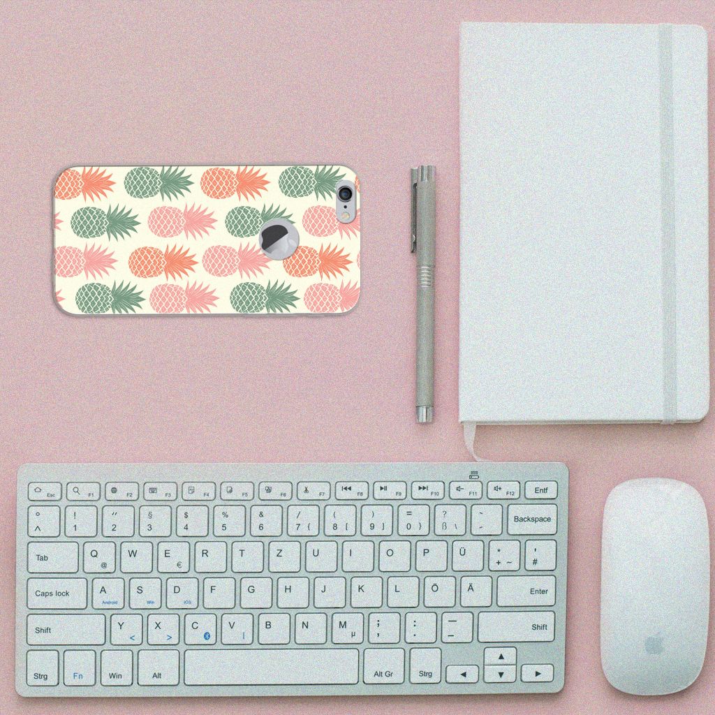 Ananas is een woord uit het Tupi, de taal van de Tupi-indianen, en betekent uitmuntende vrucht. Dit fruit van zeer hoge kwaliteit staat op onze superieure boekhoesjes, stand cases, hard cases en TPU cases. Jij blijft er gezond uitzien als je zo nu en dan een hap neemt van een Ananas , jouw smartphone blijft tip top in orde als je er een leuk telefoonhoesje omheen doet. Een ananas heeft stevig, veerkrachtig vruchtvlees. Een beetje te vergelijken met het TPU in onze hoesjes. TPU is elastisch materiaal, dat zeer buigzaam is. Vandaar dat het zeer schokbestendig is. Het ananas design staat op een staat op een TPU case. Deze Apple iPhone 6 Plus | 6s Plus Siliconen Case wordt alleen aan de bovenkant bedrukt en is zeer flexibel. De randen van het hoesje blijven transparant.