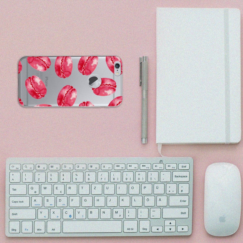 Dit tpu hoesje met Pink Macarons is een zeer opvallende bescherming voor jouw smartphone. Macarons zijn Franse koekjes: kleine, rond en luchtig. Ze worden in veel verschillende smaken gemaakt, herkenbaar aan de verschillende kleuren zoals chocolade (donkerbruin), mokka (middenbruin), kersen (rood), pistache (groen), aardbei (roze), framboos (karmijn). Deze kleuren kun je niet allemaal zien op dit fraaie design hoesje met roze macarons. Heb je altijd al een Apple iPhone 6 Plus | 6s Plus Siliconen Case willen hebben met roze macarons? Grijp dan nu je kans. Deze case heeft zeer veel goede eigenschappen, zoals elastisch vermogen, flexibiliteit en schokbestendigheid. Dit design hoesje met roze macarons wordt aan de bovenkant bedrukt, de zijkanten blijven doorzichtig. De case heeft opstaande randen aan de voorzijde en beschermt samen met een screenprotector jouw telefoon perfect. De case heeft ook een handige standaard.