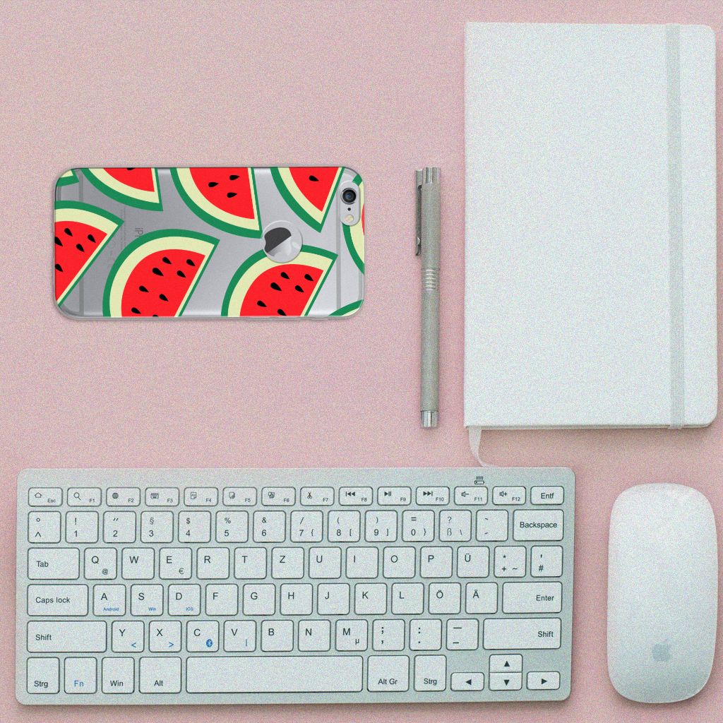 Watermeloenen zijn uitstekende dorstlessers, misschien dat je daarom juist in de zomermaanden extra enthousiast raakt van dit design hoesje Watermelons. Jij blijft gezond als je zo nu en dan een watermeloen neemt, jouw smartphone blijft in tact als je er deze Apple iPhone 6 Plus | 6s Plus Siliconen Case omheen doet. Deze tpu case wordt alleen aan de bovenkant bedrukt met watermeloenen is zeer flexibel. De randen van het hoesje blijven transparant. Je kunt ook kiezen voor andere soorten fruit op je hoesje. Kijk maar eens naar onze andere design hoesjes op onze website.