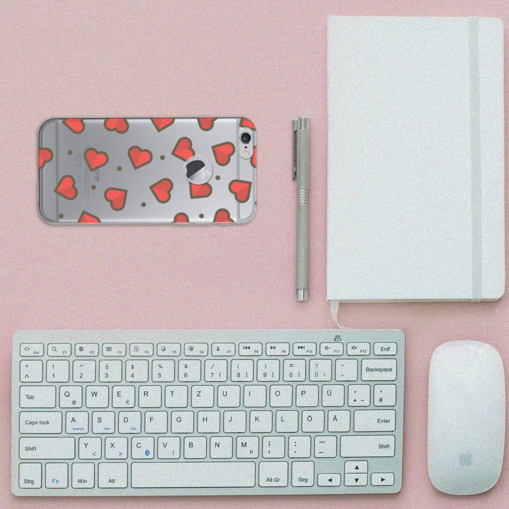 Met deze Apple iPhone 6 Plus | 6s Plus TPU bumper met hartjes op een grijs met witte achtergrond maak jij een goede beurt als je dit cadeau geeft aan je vriend of vriendin. Bekroon je liefde voor elkaar met deze hele mooie tpu case, die jouw telefoon met name aan de achterkant en zijkanten goed beschermt. Dit is echt een prachtige manier om je telefoon te beschermen. Het tpu hoesje met design met Hearts is ook nog eens zeer praktisch, mede door het buigzame materiaal en de uitsparingen. Als je telefoon met het TPU hoesje uit je hand valt, stuitert het als het ware meteen weer terug in je hand en zal het scherm in tact blijven. De case heeft namelijk opstaande randen aan de voorkant. Alleen de bovenkant van de case wordt bedrukt met hartjes, de zijkanten zijn doorzichtig. Voor een habbekrats is dit hoesje met hartjes op een grijs met witte achtergrond te bestellen.