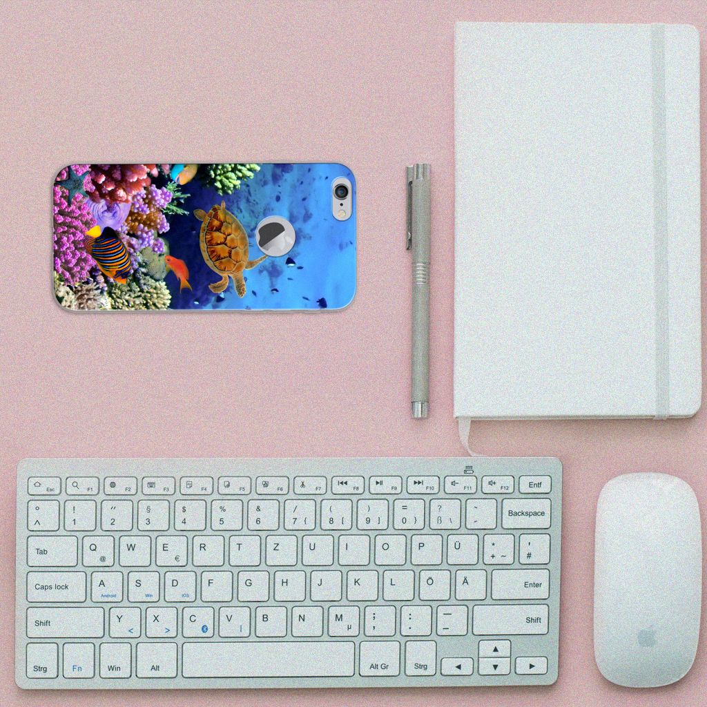 Dit kleurrijke hoesje met tropische Vissen is een ware eyecatcher. Als je aan het duiken bent en je treft een school aan met dit soort opvallende vissen, dan heb je een geweldige ervaring. Maar je hoeft er eigenlijk niet per se het water voor in te duiken. Want wij hebben een schitterende verzameling vissen op dit design hoesje gezet. Met onze zeer geavanceerde printer zetten we de afbeelding van vissen op de bovenkant van de Apple iPhone 6 Plus | 6s Plus TPU Hoesje, de randen blijven transparant. De case is gemaakt van zeer elastisch en onbreekbaar materiaal. Verder is je telefoon natuurlijk goed beschermd met deze tpu case met print van vissen. Deze case heeft tevens opstaande randen, waardoor je scherm de grond niet zal raken als de smartphone uit je handen valt.