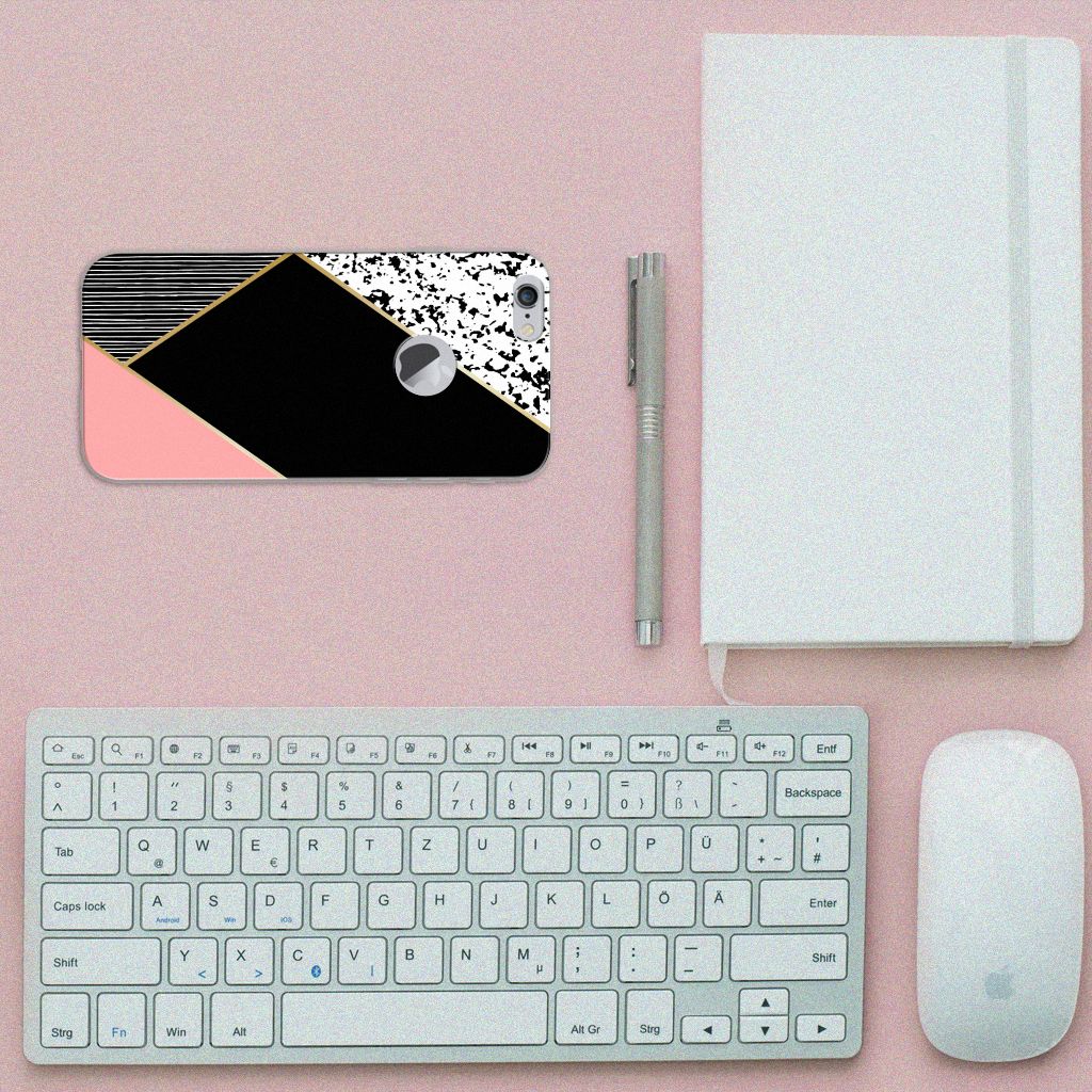 - Met een tpu-siliconen hoesje met roze, zwarte en witte vlakken blijft jouw telefoon in tact.