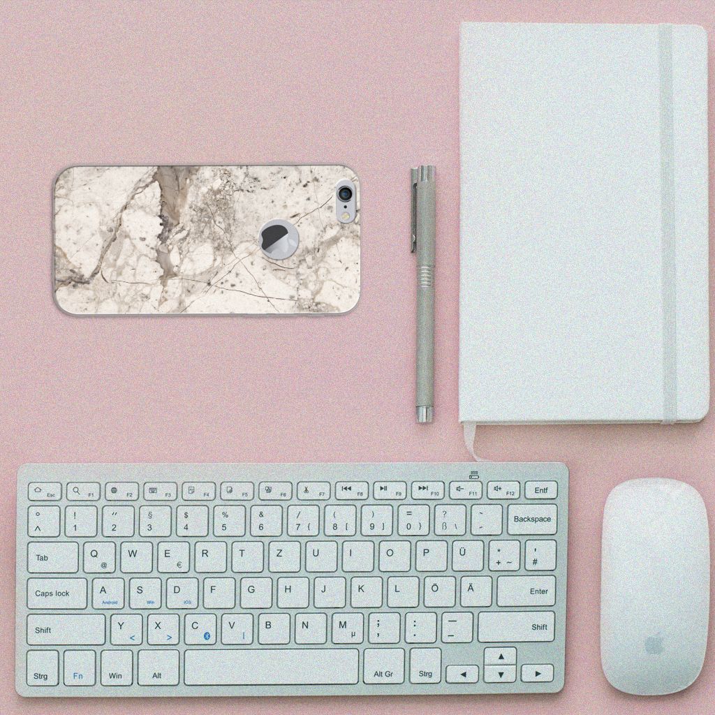 Dit design hoesje met Marmer Beige is voor de artistieke personen onder ons. De Grieken en Romeinen wisten het steen al te waarderen door het als bouw- en bekledingsmateriaal toe te passen. Naast het witte Carrara marmer met haar zacht grijze geaderde belijning zijn de diverse marmersoorten in een ruim kleurenpallet te krijgen. We hebben verschillende kleuren op design hoesjes gezet, zoals in dit geval beige marmer. Dit is een Apple iPhone 6 Plus | 6s Plus TPU Siliconen Hoesje met marmer in beige kleur. Het marmer wordt bedrukt op de voorkant van een tpu case, die beschikt over opstaande randen aan de voorkant en goed combineert met een screenprotector. De rijkheid aan kleuren en varianties in afwerking geeft designers de vrijheid om met marmer hele mooie architectonische projecten te realiseren. Wij hebben onze designer ook veel vrijheid gegeven. Het resultaat zie je terug in deze tpu case met beige marmer, die jouw smartphone goed beschermt. De zijkanten van de case worden niet bedrukt met marmer.