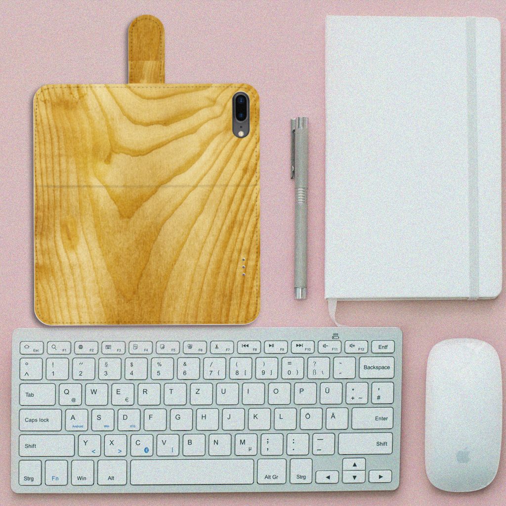 Apple iPhone 7 Plus | 8 Plus Bookstyle Case met pasjes en magnetisch lipje Licht Hout