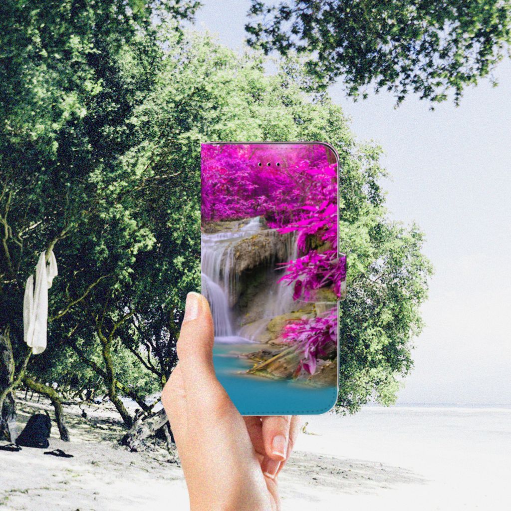 Op deze Apple iPhone 7 Plus | 8 Plus Flip Cover zie je een kalme waterval en de achtergrond is gevuld met paarse bomen. Samen creëert dit een prachtig en kleurrijk spektakel, iets wat je graag op je Apple iPhone 7 Plus | 8 Plus hoesje ziet. Wanneer je hiernaar kijkt, word je direct kalm. Als jij je even boos of verdrietig voelt, hoef je alleen maar naar jouw boekhoesje te kijken om weer blij te worden. Ook jouw telefoon zal blij zijn met deze Flip Cover aangezien deze goede bescherming biedt. Als jij je telefoon per ongeluk laat vallen, is er niets aan de hand. Het hoesje zorgt ervoor dat de telefoon intact blijft. Zelfs als hij op het beeldscherm zou vallen, is er dankzij de magnetische sluiting, niets aan de hand.