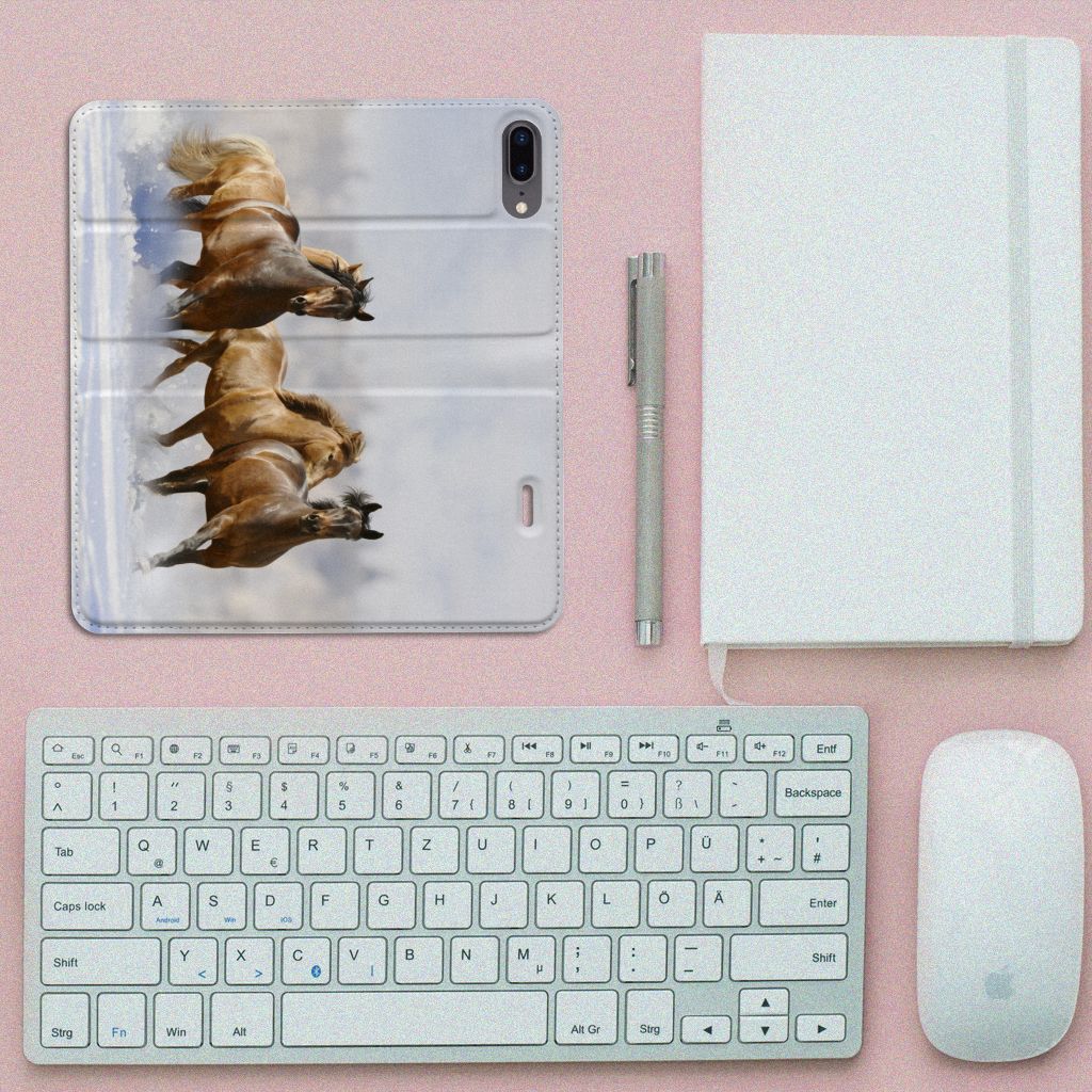Voor de paardenliefhebbers onder ons hebben we onze collectie uitgebreid met dit design hoesje met print van paarden. Vroeger hield de mens vooral werkpaarden, inmiddels hebben we vriendschap gesloten met het paard. Vandaar dat het ook een favoriet dier is op onze smartphonehoesjes, zoals deze stand cases. Deze Apple iPhone 7 Plus | 8 Plus Hoesje maken met Paarden is niet alleen super mooi en chique, het sluit ook nog perfect dankzij de magneet aan de binnenzijde. Verder heeft de case een TPU houder aan de binnenzijde en een houder voor een pasje. Zie je liever je eigen paard terug op een hoesje? Dat kan! Door zelf een uniek hoesje te ontwerpen, met eigen foto’s en teksten. De stand case met paarden wordt aan alle zijden bedrukt.