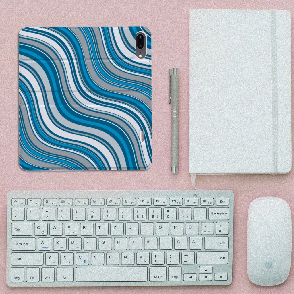 Zeer cool, dit hoesje met vooral blauwe kleuren, die in een golvende beweging jouw telefoon van een mooie uitstraling voorzien. Tijdens een zonnige vakantie aan zee is jouw smartphone perfect beschermd met dit telefoonhoesje. Het design Waves Blue van dit smartphone hoesje doet lichtjes denken aan een lolly, waarmee je een klein kind zeer blij maakt. Jouw Apple iPhone 7 Plus | 8 Plus zal er ook zeer vrolijk uitzien samen met dit design hoesje. De witte en grijze kleuren staan in mooi contrast met het blauw, waardoor de uitstraling van deze accessoire zeer mooi is. Ook voor andere kleuren kun je natuurlijk uitstekend terecht in ons assortiment. Het design staat op een Hoesje met Magneet. Deze case beschermt jouw telefoon aan alle kanten en beschikt over een 1 opbergvakje en een speciale standaard. Het hoesje wordt afgesloten met een magneet aan de binnenzijde. De houder aan de binnenzijde is van TPU.