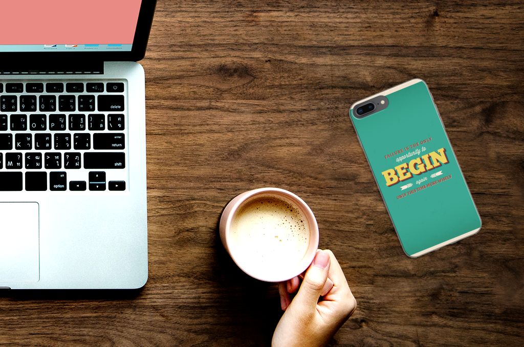 Ben je op zoek naar een uniek telefoonhoesje voor je Apple iPhone 7 Plus | 8 Plus? Dan ben je bij B2C Telecom aan het juiste adres! Speciaal voor jou hebben we dit prachtige Quote Begin design in onze collectie hoesjes opgenomen. Het design wordt bedrukt op een Siliconen hoesje met naam en is gemaakt van flexibel rubber. Het design wordt alleen aan de bovenkant van het hoesje bedrukt en de randen blijven transparant. Aan de zijkanten zijn uitsparingen gemaakt waardoor je met gemak alle knoppen en poorten kunt bedienen. Wij adviseren om dit hoesje in combinatie met een screenprotector te gebruiken voor een langere levensduur van je telefoon. Wil je dit design hoesje nog iets extra's geven? Voeg dan gratis je naam of een quote toe! Is dit design hoesje toch niet helemaal wat je zocht? Ontwerp dan zelf een hoesje in ons ontwerpprogramma.