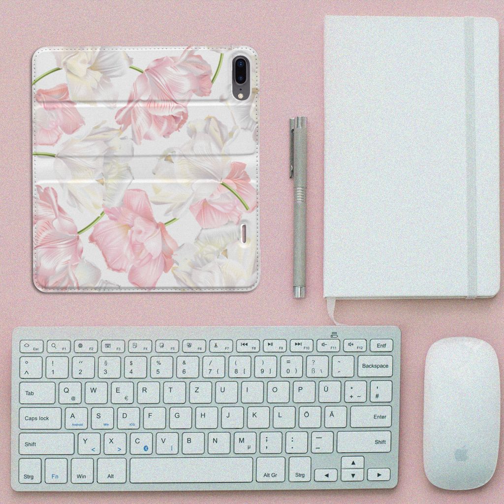 Een bosje bloemen doet een mens (en zijn smartphone) goed. De witte en roze bloemen op dit Apple iPhone 7 Plus | 8 Plus Smart Cover geven jouw smartphone een zeer mooie uitstraling. Je wordt er ook meteen een stuk rustiger van als je aan het appen of aan het bellen bent. Valt dan je telefoon op de grond, dan zal er dankzij de stand case met het design Lovely Flowers ontstaan. Onze stand cases met roze en witte bloemen zien er zeer prettig uit en zijn heel praktisch, wat blijkt uit onder meer het vakje aan de binnenkant en de handige standaard waarmee je de smartphone rechtop op tafel neer kunt zetten. De roze en witte bloemen passen goed op alle zijden van de case. Op deze stand case van leer en TPU (houder aan de binnenkant) kun je trouwens ook je eigen bloemige ontwerp zetten. In een paar simpele stappen maak je zelf een stand hoesje met daarop jouw mooiste bloemen.