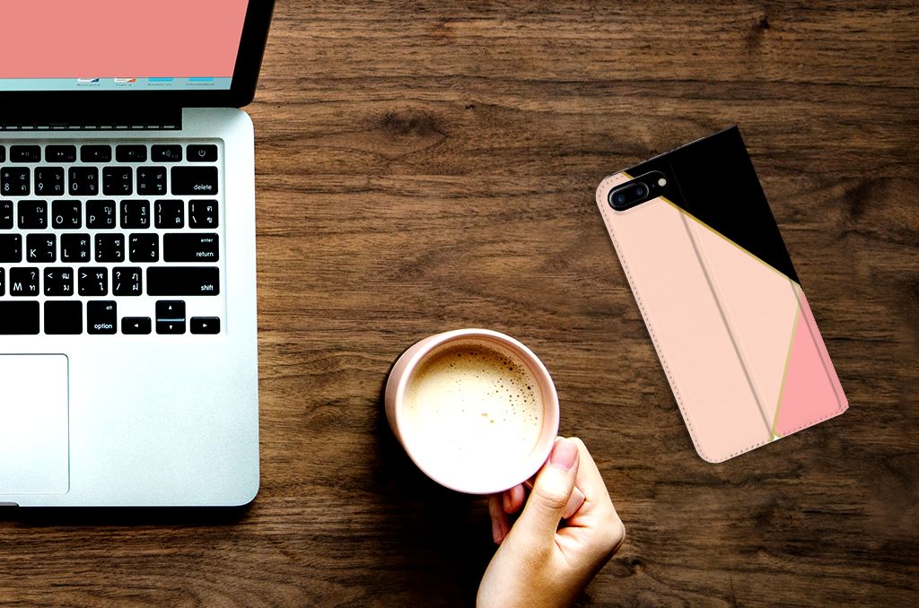 Apple iPhone 7 Plus | 8 Plus Print Stand Case Zwart Roze Vormen
