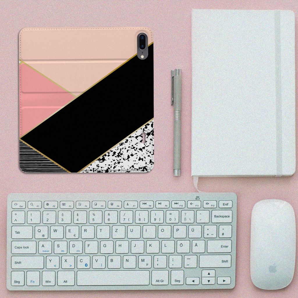 - Met een hoesje met roze, zwarte en witte vlakken op alle zijden blijft jouw telefoon in tact.