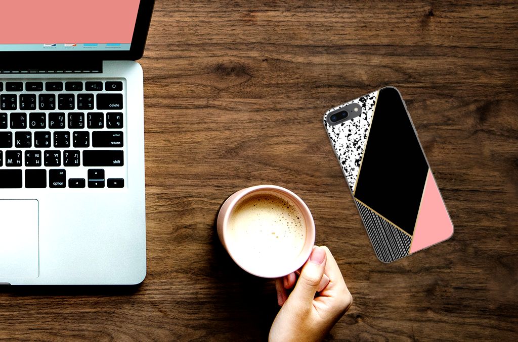 TPU Hoesje Apple iPhone 7 Plus | 8 Plus Zwart Roze Vormen Design