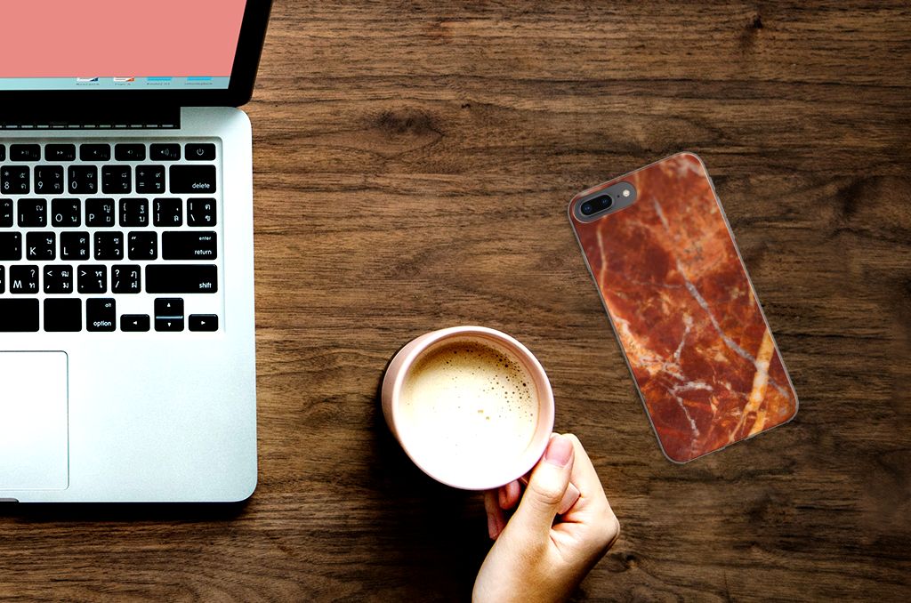 Dit design hoesje met Marmer Bruin is voor de artistieke personen onder ons. De Grieken en Romeinen wisten het al te waarderen door het als bouw- en bekledingsmateriaal toe te passen. Naast het witte Carrara marmer met haar zacht grijze geaderde belijning zijn de diverse soorten in een ruim kleurenpallet te krijgen. We hebben verschillende kleuren op design hoesjes gezet, zoals in dit geval bruin marmer. Dit is een Apple iPhone 7 Plus | 8 Plus TPU Siliconen Hoesje met marmer in bruine kleur. Het marmer wordt bedrukt op de voorkant van een tpu case, die beschikt over opstaande randen aan de voorkant en heel goed combineert met een screenprotector. De rijkheid aan kleuren en varianties in afwerking geeft ontwerpers de vrijheid om met marmer hele mooie architectonische projecten te realiseren. Wij hebben onze designer ook veel vrijheid gegeven. Het resultaat zie je terug in deze tpu case met bruin marmer, die jouw smartphone goed beschermt. De zijkanten van de case worden niet bedrukt met marmer.