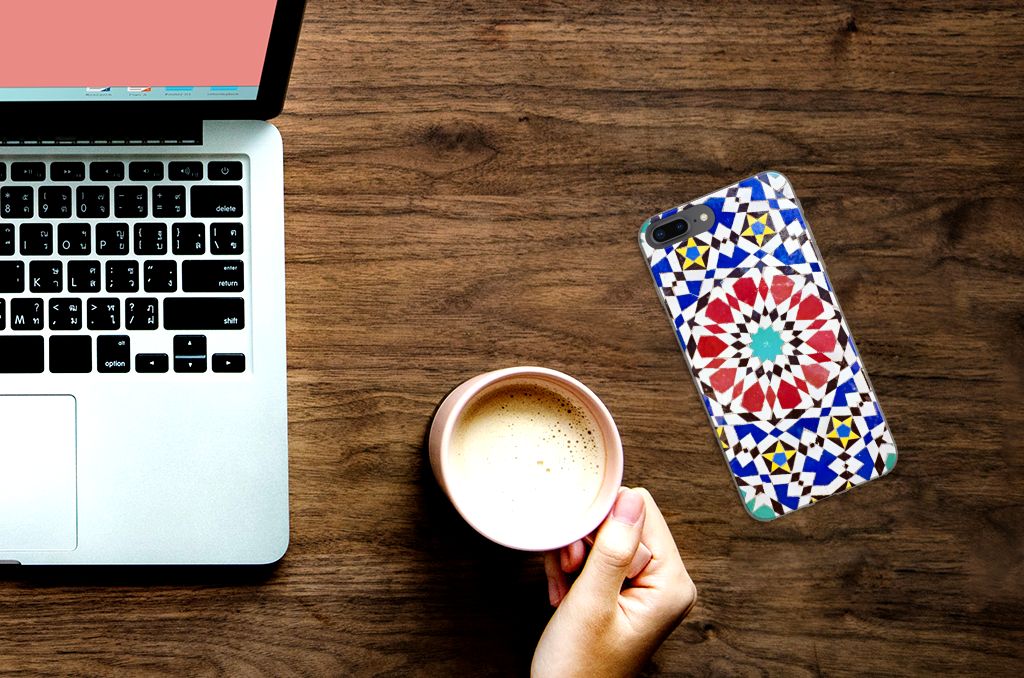 Aan design hoesjes met kunstvormen geen gebrek in onze uitgebreide collectie. Wat dacht je van dit design hoesje met Mozaïek . Dit is een kunstvorm waarbij een grote afbeelding wordt gemaakt uit een groot aantal kleine gekleurde steentjes (tesserae), die in een vloer of wand worden gemetseld. Deze gekleurde steentjes zie je terug op deze tpu case met design van mozaïek. Een tpu case is zeer flexibel. Een Apple iPhone 7 Plus | 8 Plus TPU Siliconen Hoesje met print zorgt voor een bescherming van de achterzijde en zijkanten van je smartphone. Deze zijkanten worden niet bedrukt. De Grieken en Romeinen beheersten de kunst al. Op diverse plaatsen in Europa zijn mozaïeken teruggevonden die tot op de dag van vandaag goed bewaard zijn gebleven. Met een tpu hoesje met mozaïek blijft jouw telefoon in tact.