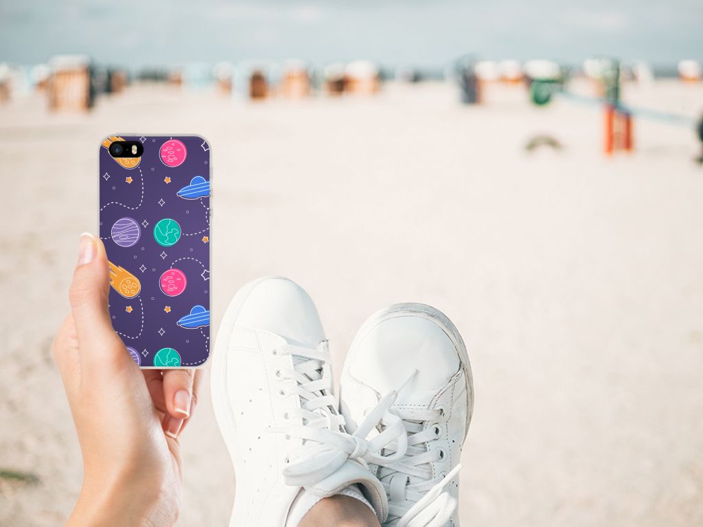 Ben je een beetje geïnteresseerd in buitenaards leven? Dan kan je wel eens enthousiast raken van deze Apple iPhone SE | 5S Silicone Back Cover met Space print. Dus mensen die van science fiction houden zullen deze case ongetwijfeld mooi vinden. Er zijn verschillende planeten en vliegende schotels te ontdekken in dit design hoesje. Dit kunstwerkje is voor heel weinig geld te bestellen op onze website. Je krijgt er maximale bescherming van je smartphone voor terug. De TPU case wordt alleen aan de bovenkant met space bedrukt en is zeer flexibel. De randen van het hoesje blijven transparant en worden niet bedrukt. Je zult ontdekken dat dit hele stevige telefoonhoesje een heel goede bescherming biedt tegen alle vormen van schade. Met dit hoesje hoef je niet bang te zijn dat er krassen op je design komen of scheuren in je scherm.